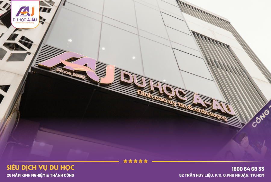 Năm 2025 đánh dấu một bước chuyển mình đặc biệt của Du học Á - Âu khi công ty chính thức hoàn thiện giao diện mặt tiền và không gian làm việc mới tại trụ sở 52 Trần Huy Liệu, P. Phú Nhuận, TP.HCM. Không chỉ là sự thay đổi về hình thức, diện mạo mới của Á - Âu thể hiện tinh thần hiện đại, chuyên nghiệp và định hướng toàn cầu – đúng với vị thế của một trong những đơn vị tư vấn du học hàng đầu tại Việt Nam.