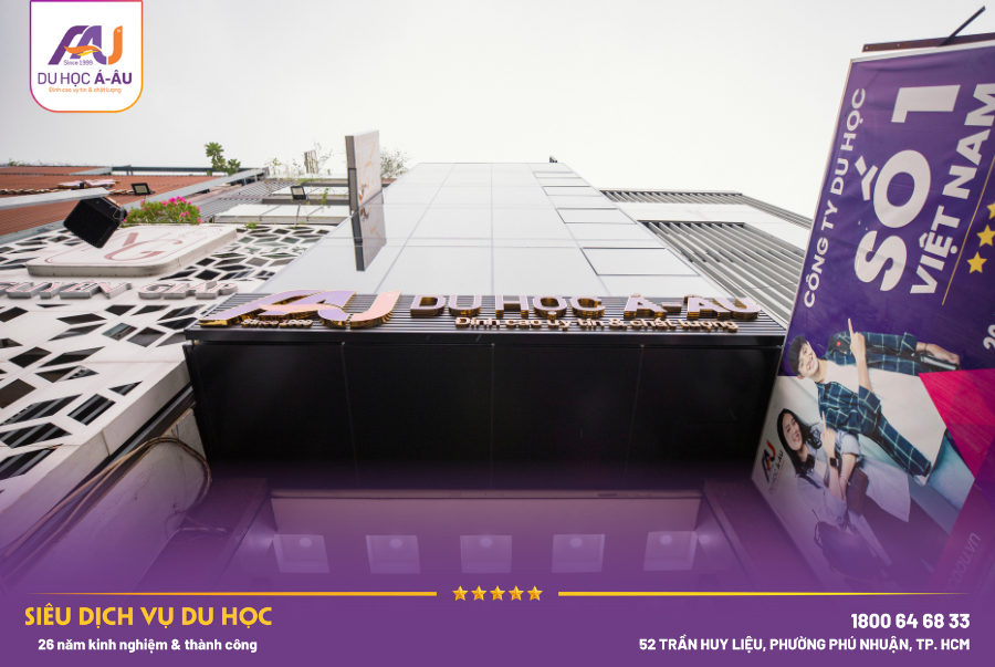 Năm 2025 đánh dấu một bước chuyển mình đặc biệt của Du học Á - Âu khi công ty chính thức hoàn thiện giao diện mặt tiền và không gian làm việc mới tại trụ sở 52 Trần Huy Liệu, P. Phú Nhuận, TP.HCM. Không chỉ là sự thay đổi về hình thức, diện mạo mới của Á - Âu thể hiện tinh thần hiện đại, chuyên nghiệp và định hướng toàn cầu – đúng với vị thế của một trong những đơn vị tư vấn du học hàng đầu tại Việt Nam.