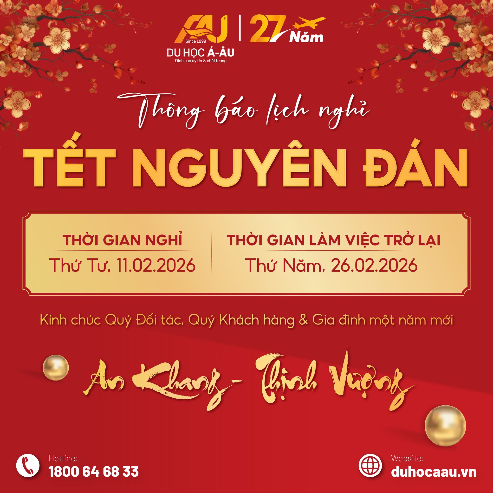 Nhân dịp Xuân Bính Ngọ 2026, Công ty Du học Á – Âu trân trọng thông báo lịch nghỉ Tết như sau:
